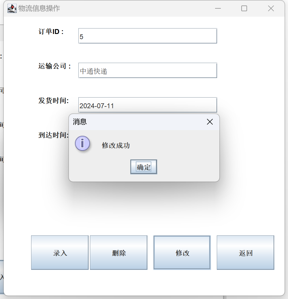 4、物流信息管理:对物流信息进行添加,修改,删除,查看操作