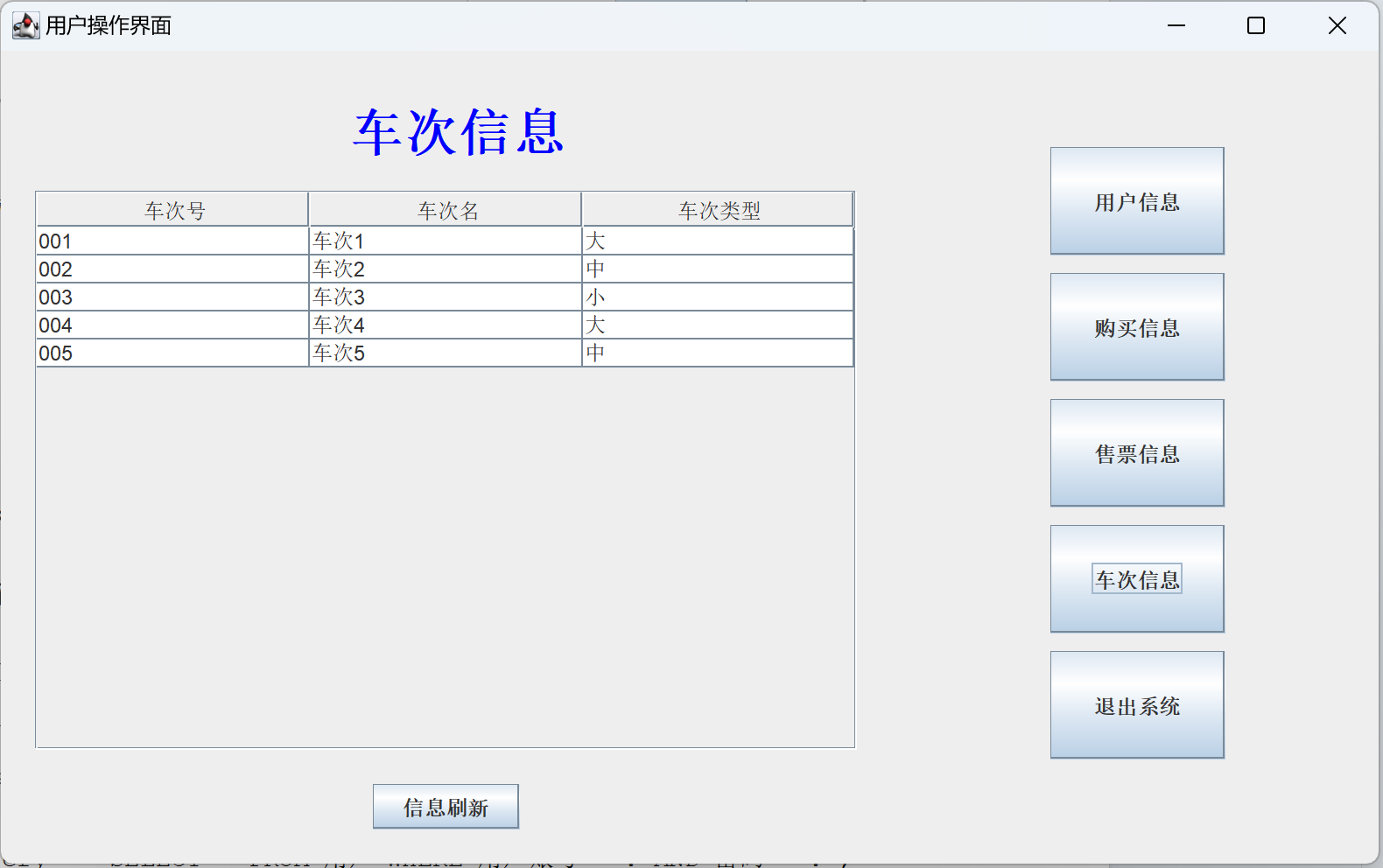 系统截图5:查看车次信息